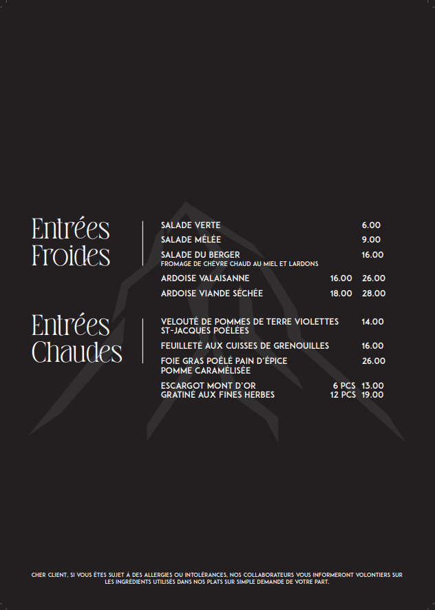 Introducing the Menu at Le Cervin